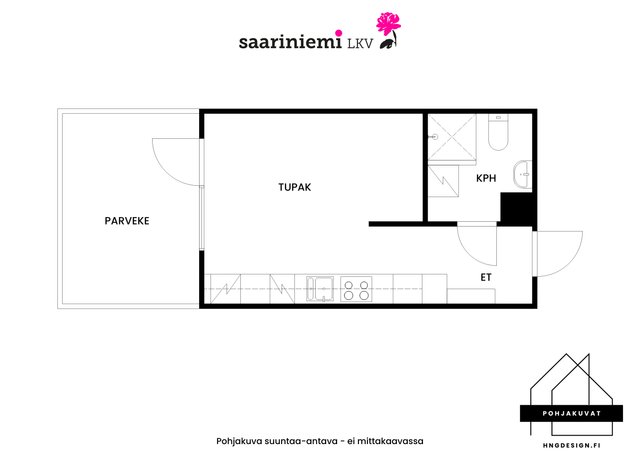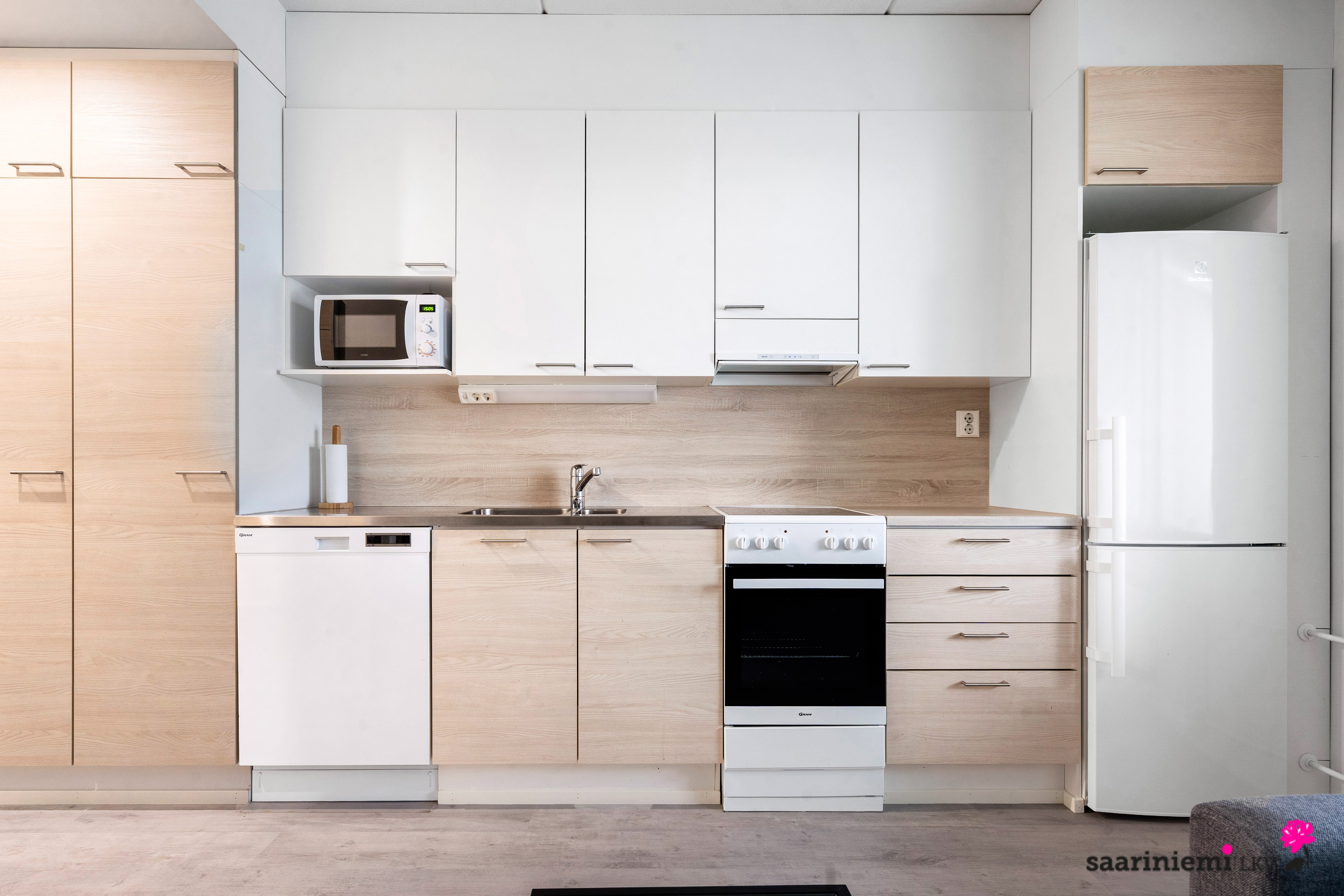 - Jääkaappipakastin, liesi, liesituuletin, ja astianpesukone