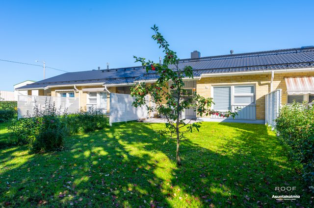 Taloyhtiö sijaitsee rauhallisella alueella Oulujoen läheisyydessä, kävelymatkan päässä Muhoksen monipuolisista palveluista. Valoissa asunnossa on erinomainen pohjaratkaisu. Olohuone on todella tilava ja sen yhteyteen sijoittuu keittiö. Olohuoneesta on kulku etelänsuuntaiselle osittain katetulle terassi ja omalle reilun kokoiselle piha-alueelle. Hyvänkokoisessa makuuhuoneessa on tilaa työpisteelle ja säilytystilaa on kaapistojen lisäksi myös makuuhuoneen yhteydessä olevassa vaatehuoneessa. Erillinen wc on remontoitu 2015. Kylpyhuoneeseen sijoitat hyvin pyykinpesukoneen. Kylpyhuone ja tunnelmallinen sauna on remontoitu 2018. Huoneiston on kaikki pinnat uusittu viime vuosina ja asunto onkin siistissä kunnossa.