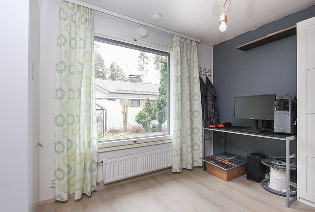 - Kolme makuuhuonetta. Korkeapainalattiat ja seinät maalatut, yhdessä makuuhuoneessa tapetti.