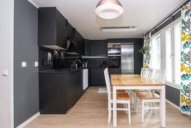 - Mikroaaltouuni, liesituuletin, astianpesukone, liesi, ja jääkaappipakastin