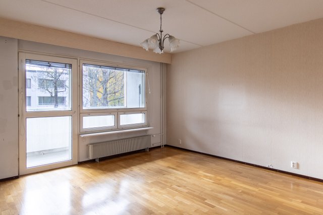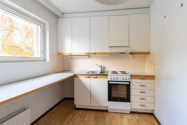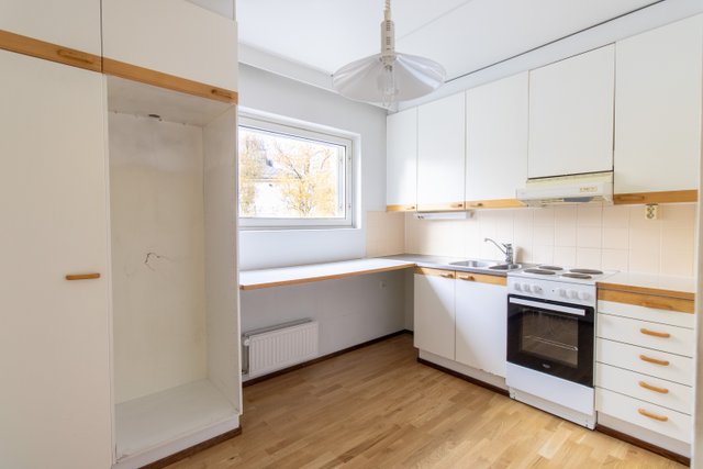 Asunnon lattiat ovat kaunista parkettia. Keittiössä on kaikki tarpeellinen ruoanlaittoon, ja kylpyhuoneessa on liitäntä pesukoneelle. Taloyhtiön tiloista löytyy muun muassa pyörävarasto ja urheiluvälinevarasto.