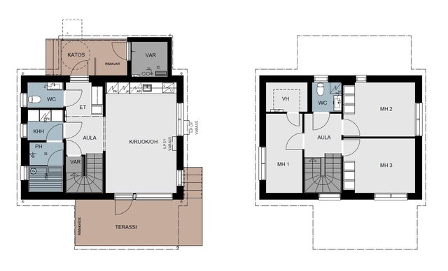 - Olohuoneesta kulku terassille. Terasseille on mahdollisuus saada lisähintaan lasikatos sekä lasitetut seinät.