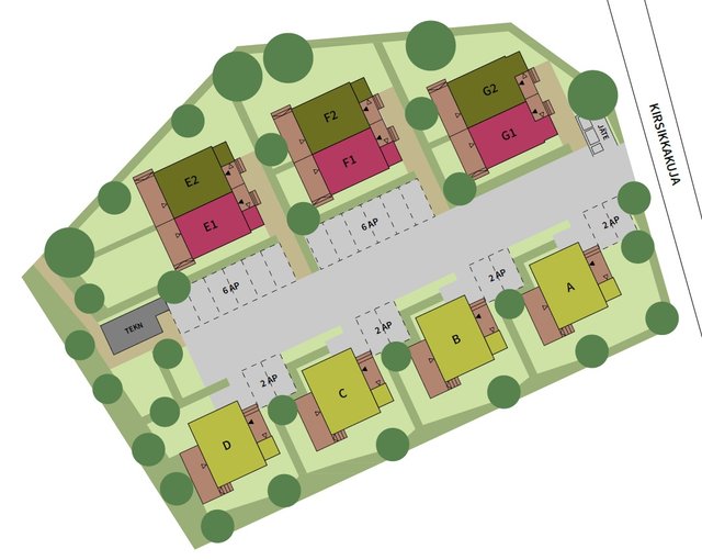 - Kohteeseen rakennetaan asemapiirustuksen mukaisesti yhteensä 20 autopaikkaa, jotka on jaettu huoneistojen hallintaan siten että jokaiselle huoneistolle kuuluu kaksi autopaikkaa. Kaikki autopaikat varustetaan lämmityspistorasialla, ja niihin on mahdollista tilata lisätyönä sähköajoneuvon latausasema asennettuna. Autopaikat kytketään asunnon sähkömittaukseen.