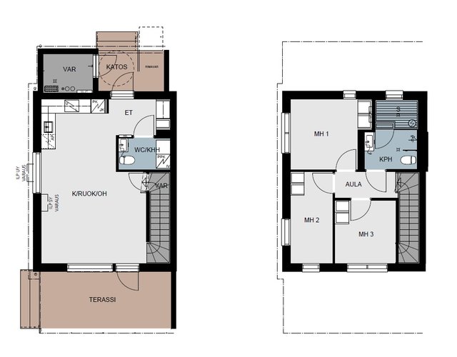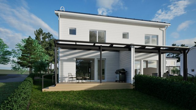 - Olohuoneesta kulku terassille. Terasseille on mahdollisuus saada lisähintaan lasikatos sekä lasitetut seinät.