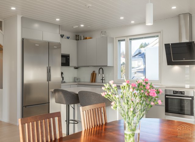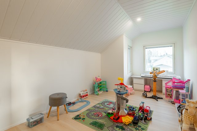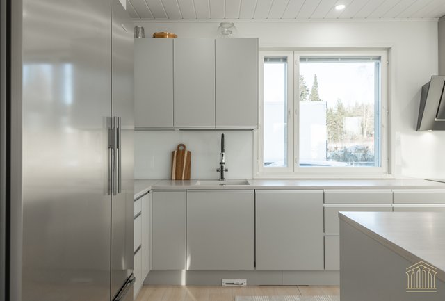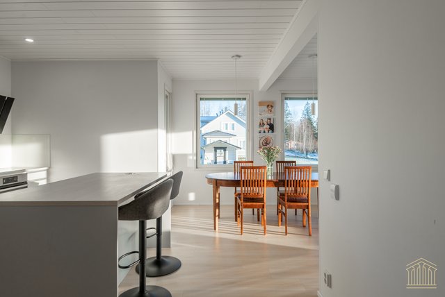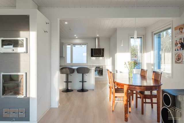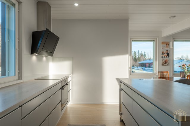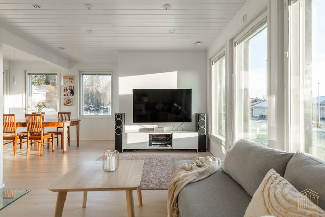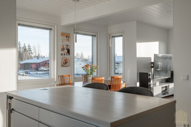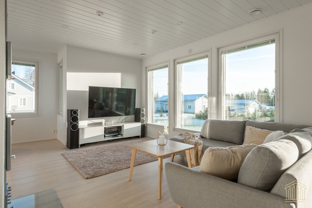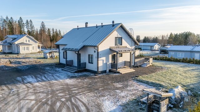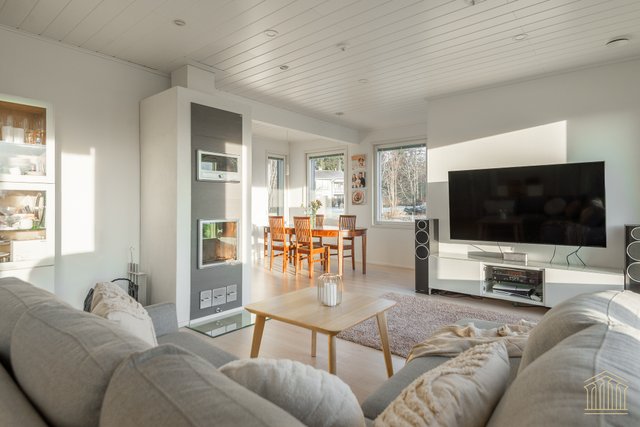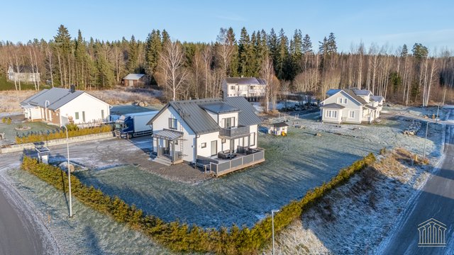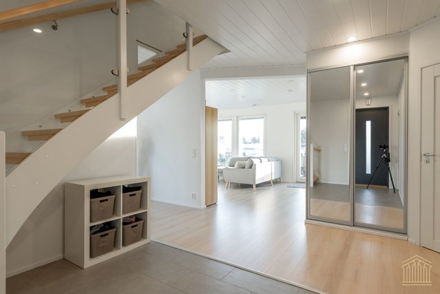 Tämä koti kokoaa yhteen nykyaikaisen omakotitalon parhaimmat puolet. Avara pohjaratkaisu, tilavat huoneet, alakerrassa huonekorkeus 260 cm sekä lämmitysmuotona maalämpö. Kokonaisuus näkyy edellä mainittujen yksityiskohtien ansiosta toimivana ja houkuttelevana kokonaisuutena, jossa kiireellinen lapsiarki, lemmikit ja asumismukavuus ovat kaikki huomioitu.