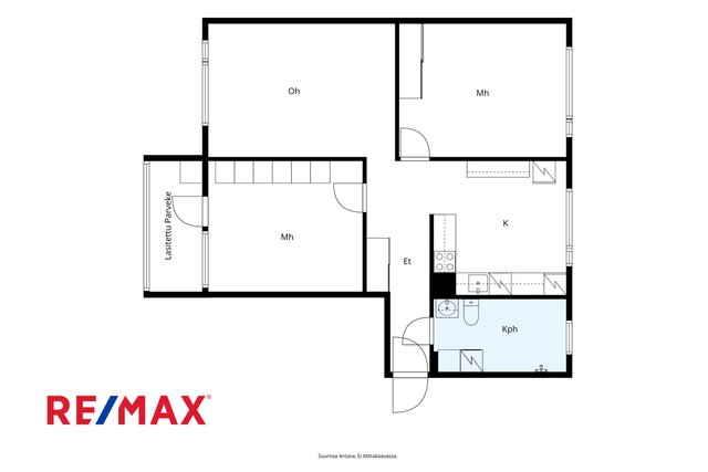 - Ei tarkistusmitattu. Pinta-alat saattavat tämän ikäisissä kohteissa (yhtiö rekisteröity ennen 01.01.1992) poiketa olennaisestikin asuinrakennusten nykyisten mittaustapojen ja standardien (SFS 5139) mukaan laskettavasta asuintilojen pinta-alasta. Pinta-ala voi siis olla edellä mainittua pienempi tai suurempi. Pinta-ala 78.5 ja jyvitetty pinta-ala 73.6