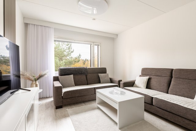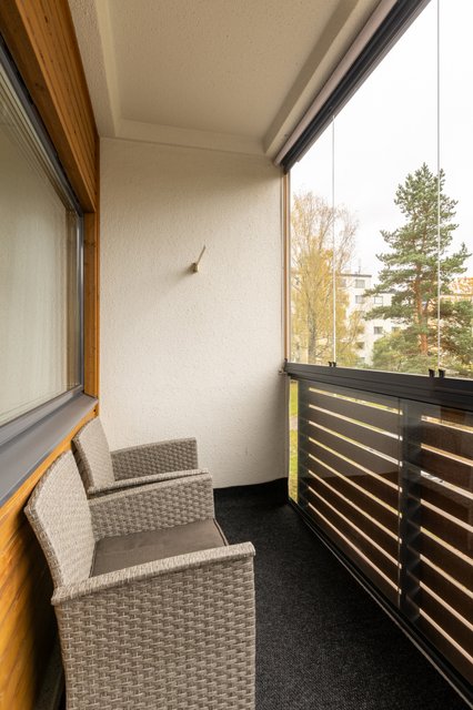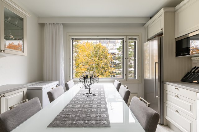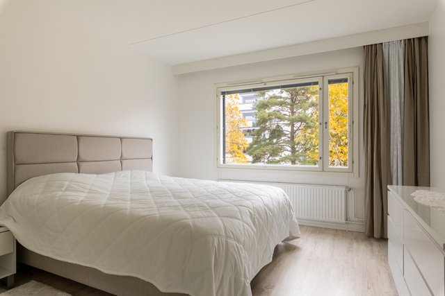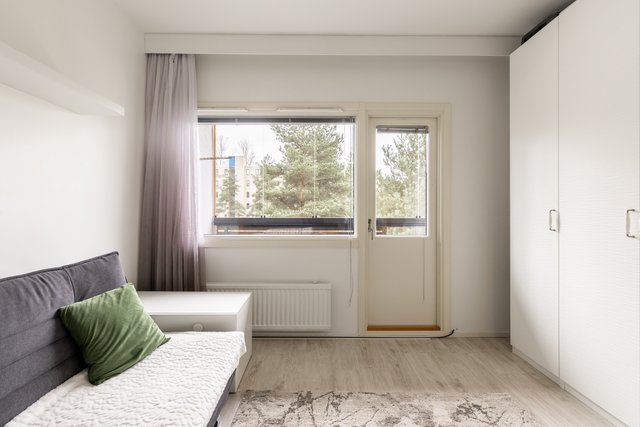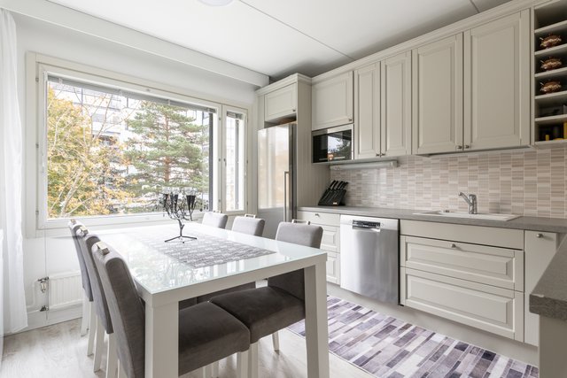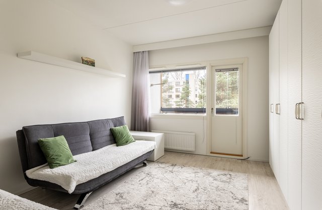 Asunnon pohjaratkaisu on käytännöllinen ja avara, ja se on hyvässä kunnossa. Keittiö on varustettu nykyaikaisilla laitteilla, ja olohuoneesta pääsee suoraan parvekkeelle, jossa voi nauttia rauhallisista hetkistä. Taloyhtiössä on myös sauna ja kuivaushuone, mikä tekee arjesta sujuvampaa.
