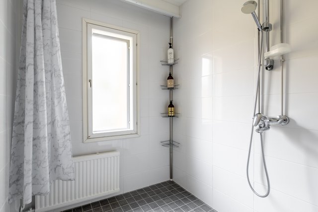 - WC-istuin, suihku, peilikaappi, allaskaappi, pesuallas, ja bidee-suihku