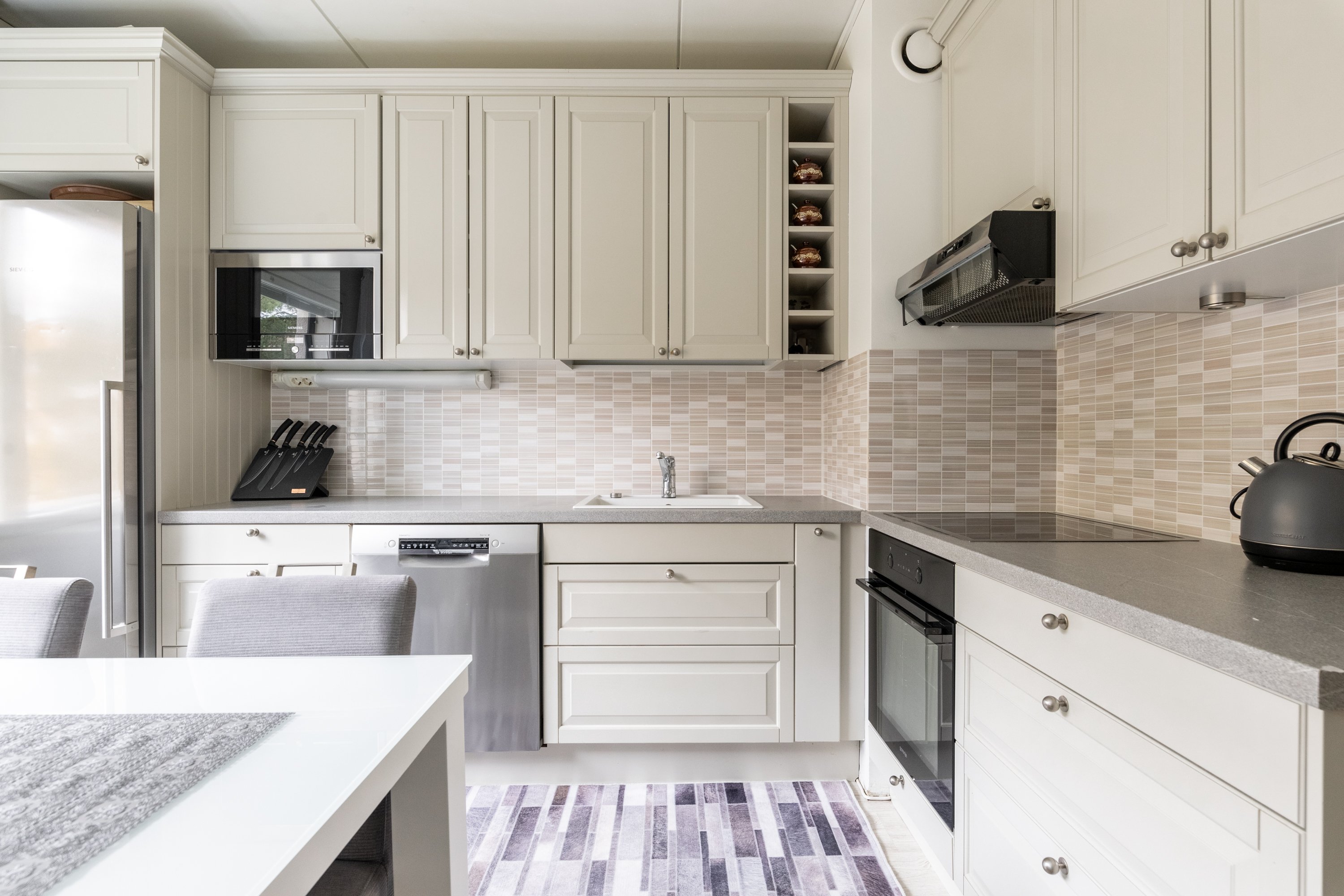 - Jääkaappi, uuni, liesi, liesituuletin, mikroaaltouuni, ja astianpesukone