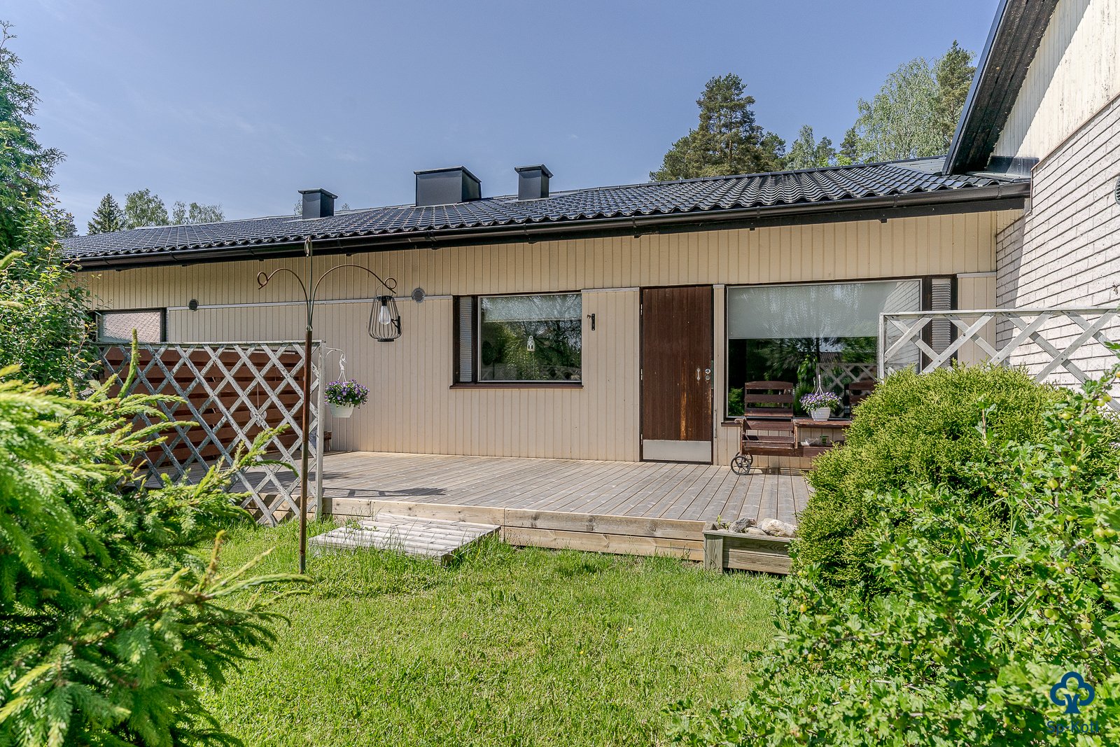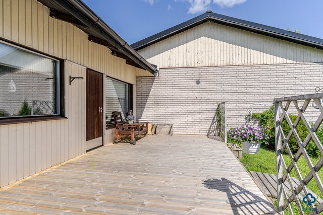 Asunnon pinnat ovat pääosin hyvässä kunnossa. Kaunis, lämminsävyinen laminaattilattia on uusittu koko asunnossa 2013. Vaatehuone ja erillinen wc lisäävät asumismukavuutta. Olohuoneesta on käynti suurelle etelän suuntaan olevalle pihalle. Terassi on tehty 2024. Sisäänkäynnin edessä on tilava ulkovarasto.