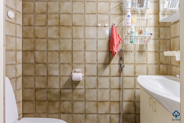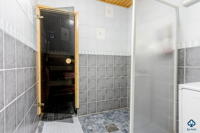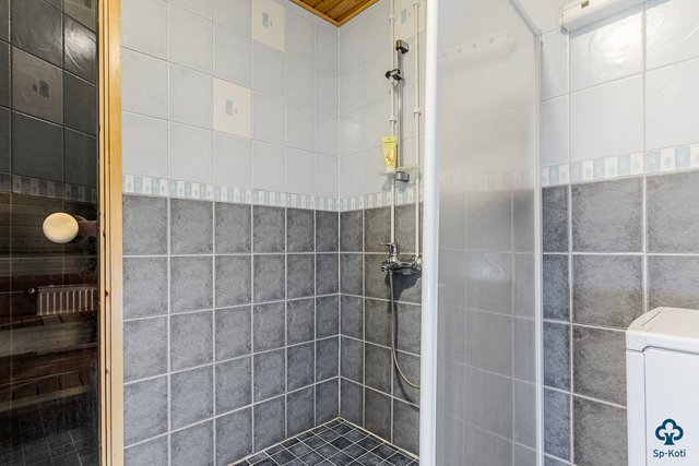 - Kylpyhuone on remontoitu 2002. Laatoitettu ja kaakeloitu. Suihku, käsienpesuallas, pesukoneliitäntä, lattialämmitys.