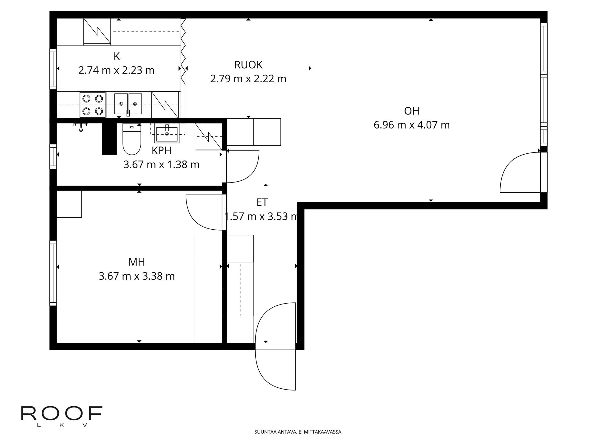 - Pinta-alaa ei ole tarkistusmitattu. Edellä mainittu pinta-ala saattaa tämän ikäisessä kohteessa poiketa olennaisestikin huoneiston nykyisen ja rakentamisaikaisen mittaustapojen ja standardien mukaan laskettavista pinta-aloista. Huoneiston todellinen pinta-ala voi siis olla yhtiöjärjestyksessä, isännöitsijäntodistuksessa ja esitteessä mainittua suurempi tai pienempi. Myyntihinta ei ole neliöhintaperusteinen.