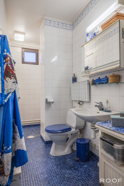- WC-istuin, suihku, pesukoneliitäntä, peilikaappi, ja pesuallas