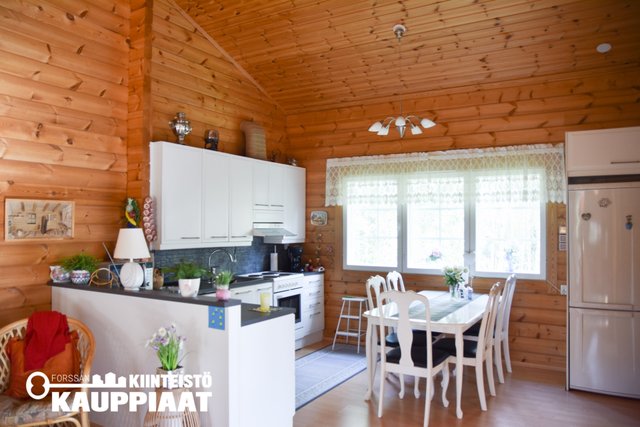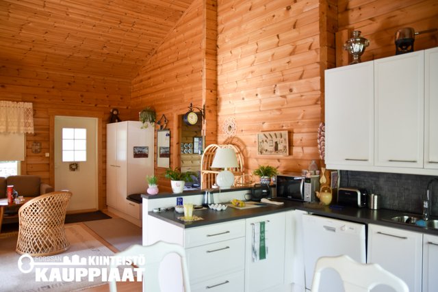 Kohteen avara tupa ja avokeittiö korkeine kattoineen luovat valoisan ja ilmavan tunnelman. Lattialämmitys ja hirsipaneelit tuovat lämpöä ja kodikkuutta jokaiseen huoneeseen. Makuuhuoneita on kaksi, ja vierashuone tarjoaa lisätilaa majoittua. Järeä ilmavesilämpöpumppu-järjestelmä takaa lämmön myös paukkupakkasilla.