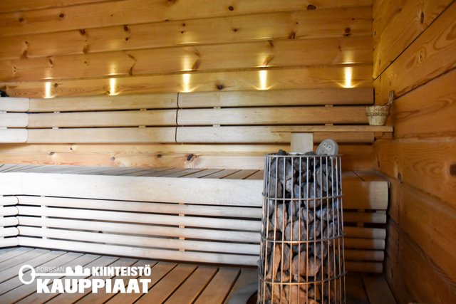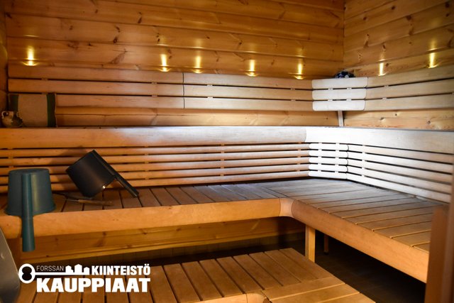 - Tilava sauna, jossa sähkölämmitteinen kiuas.