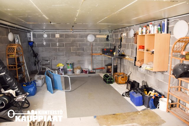 - Peltivarasto/autotalli, maapohja. Täällä 16 A sulake.