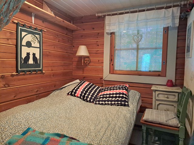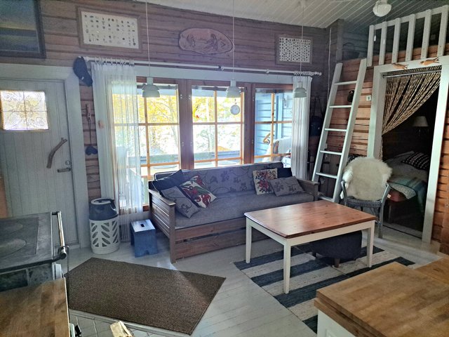 Vuonna 1986 valmistunut hirsirakenteinen mökki on tunnelmallinen ja kodikas. Olohuoneen avokeittiö ja korkea katto luovat avaran ja ilmavan tilan, jossa on mukava viettää aikaa perheen ja ystävien kanssa. Mökki on kalustettu, joten pääset nauttimaan siitä heti ilman ylimääräistä vaivaa.
