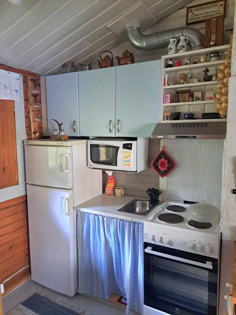 - Jääkaappipakastin, liesituuletin, mikroaaltouuni, ja liesi