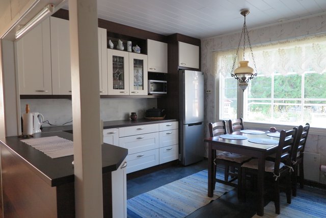 - Jääkaappipakastin, liesi, astianpesukone, ja liesituuletin