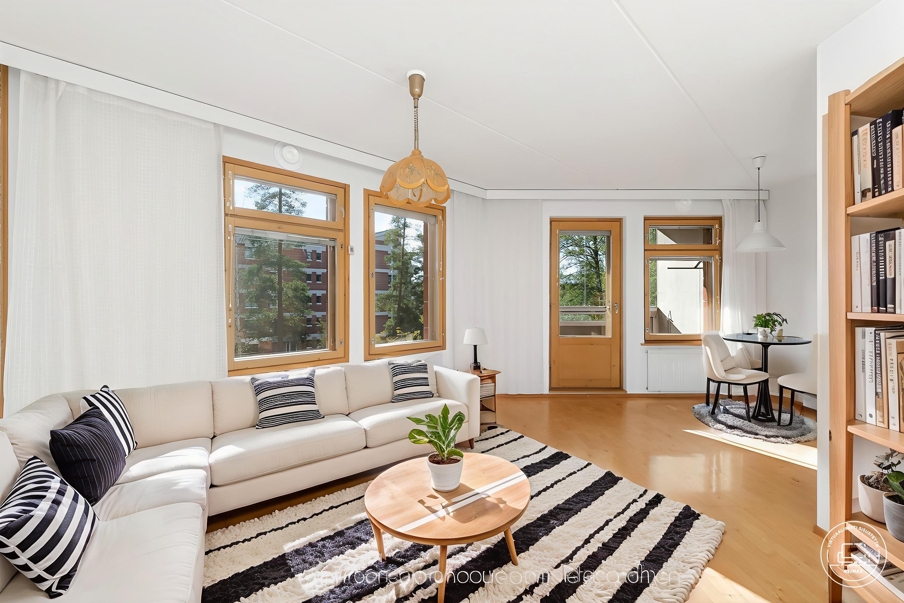 Tämä valoisa kaksio sijaitsee Vantaan Pähkinärinteessä, rauhallisella ja vehreällä alueella. Asunto on neljännessä kerroksessa, ja sieltä avautuvat kauniit näkymät sisäpihalle. Lasitettu parveke suuntautuu etelään, mikä tuo mukavasti luonnonvaloa sisätiloihin.