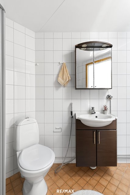 - WC-istuin, suihku, peilikaappi, pesuallas, bidee-suihku, allaskaappi, ja suihkukaappi