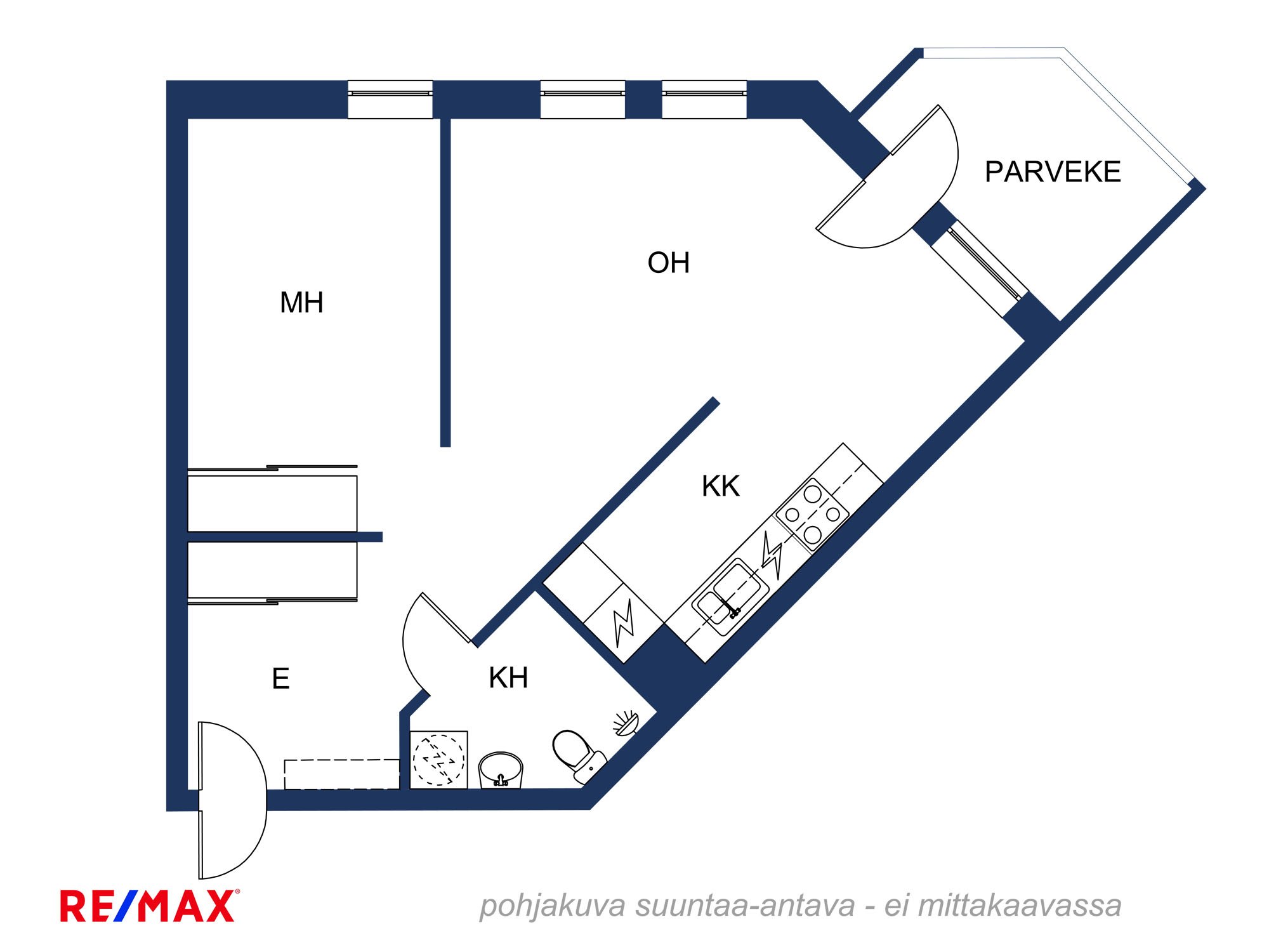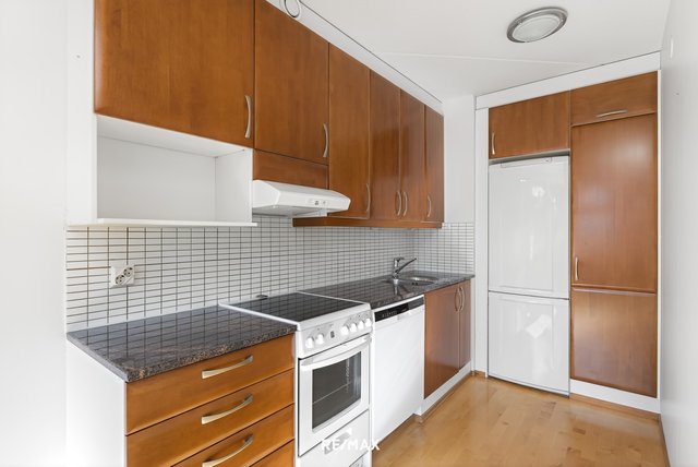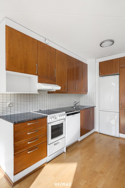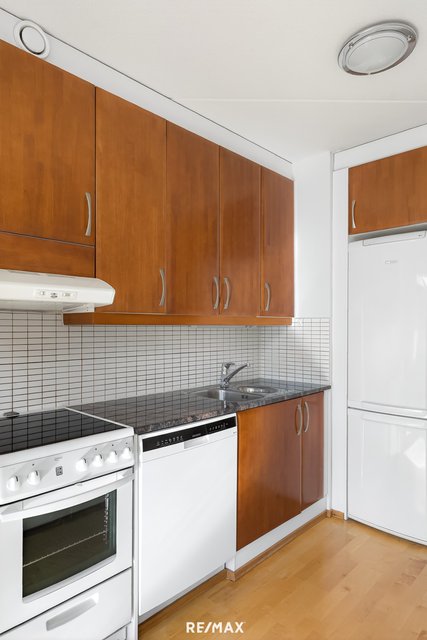 Asunnon pohjaratkaisu on käytännöllinen, ja keittiön kivitasot sekä modernit kodinkoneet tekevät ruoanlaitosta vaivatonta. Parkettilattiat tuovat lämpöä ja tyyliä olohuoneeseen ja makuuhuoneeseen. Kylpyhuone on laatoitettu ja varustettu kaikella tarpeellisella.