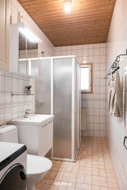 - WC-istuin, suihkukaappi, peilikaappi, allaskaappi, pesukoneliitäntä, ja bidee-suihku