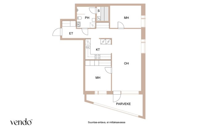 Makuuhuoneet sijoittuvat asunnon eri kulmiin, joten nukkumarauha on