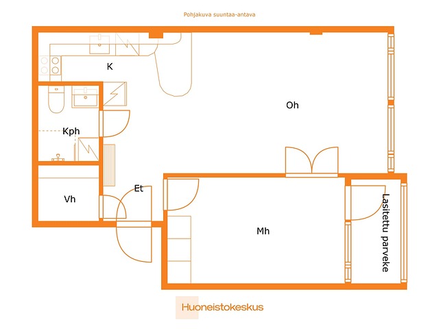 2 h, avokeittiö, kph, lasitettu parveke (Yj. 2h+kk)