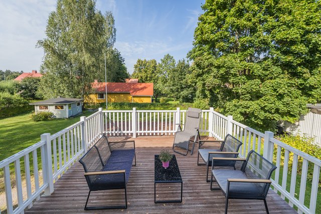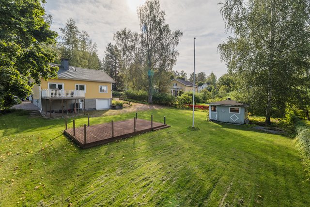 Kaunis oma tontti (1157 m²) oikein kutsuu pelailemaan nurmikolle ja puutarhurin kuopsuttamaan multaa. Kesällä uimarannalle tai kaupungin venepaikoille on lyhyt kävelymatka.