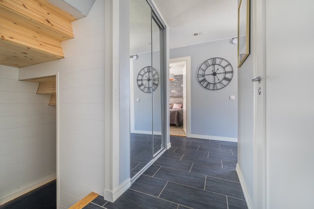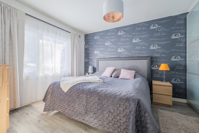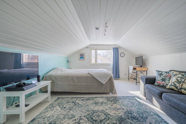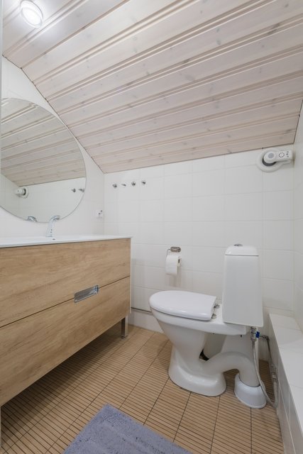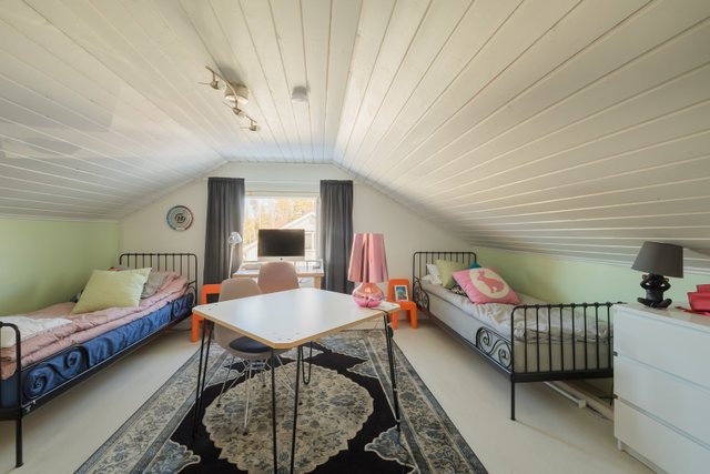 - Keskikerroksessa yksi makuuhuone, yläkerrassa kaksi makuuhuonetta (matala huonekorkeus)