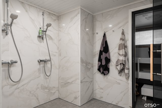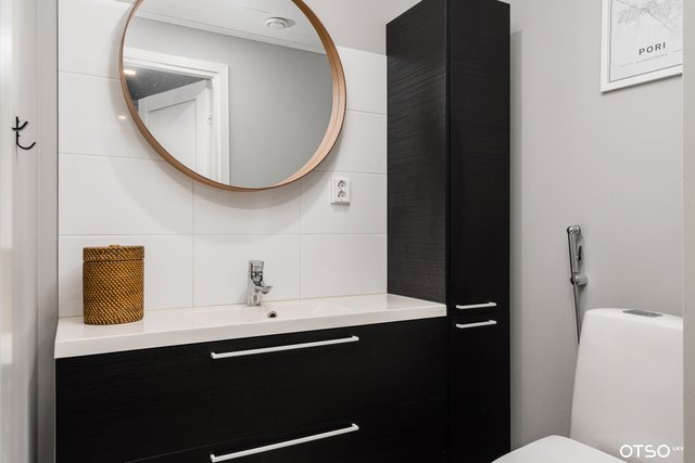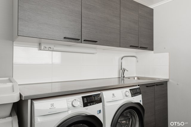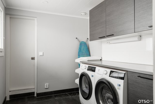 - Pesuallas, pöytätaso, pesukoneliitäntä, ja lattialämmitys