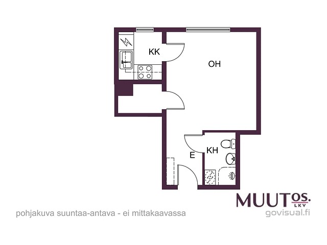 - Yhtiöjärjestyksen mukainen huoneistoselitelmä on 1h+kk.