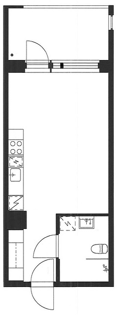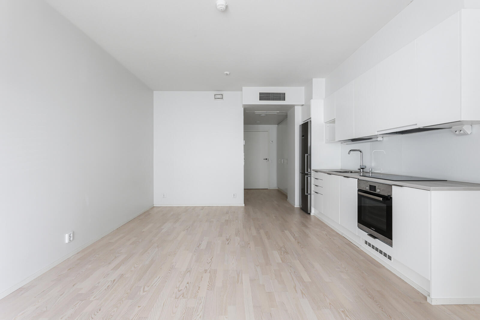Olohuone on tilava ja sen yhteydessä on vokeittiö sekä huoneiston levyinen lasitettu parveke. Kylpyhuoneessa puolestaan on paikka pesukoneelle mietitty valmiiksi.