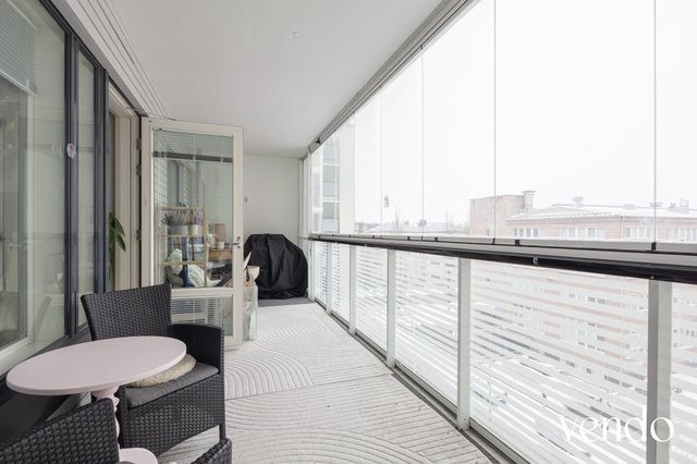 Asunnon sydämenä toimii toimiva ja tehokas pohjaratkaisu, jossa neliöt on hyödynnetty erinomaisesti. Etelään avautuva iso lasitettu parveke toimii lisähuoneena pitkälle syksyyn ja tarjoaa miellyttävät puitteet oleskeluun ja rentoutumiseen. Kesähelteillä asumismukavuutta lisää asunnon oma viilennys.