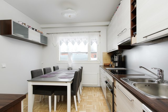 Tilavassa asunnossa on kaksi hyvän kokoista makuuhuonetta kaapistoilla varustettuna ja tilava olohuone, josta pääset omalle lasitetulle parvekkeelle. Keittiö tarjoaa erinomaisesti lasku- ja säilytystilaa, 2019 remontoidut pesuhuone ja sauna sekä erillinen wc tarjoavat erinomaiset puitteet asumiselle ja toimivalle arjelle.