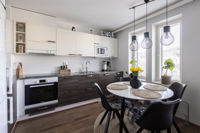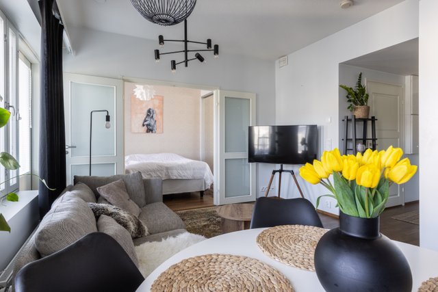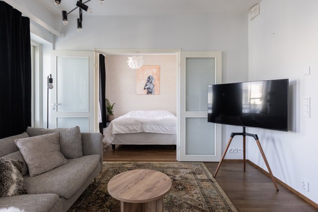 Hissitalon ylimmän kerroksen saunallinen kaksio tarjoaa erinomaiset keskusta-asumisen puitteet.