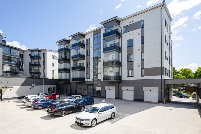 Yläkerrasta ei kantaudu kanta-askelten äänet eikä keskustan liikenne häiritse omalla parvekkeella. Auton saat halutessasi pihaan parkkiin erillisosakkeilla ostettavaan autopaikkaan.