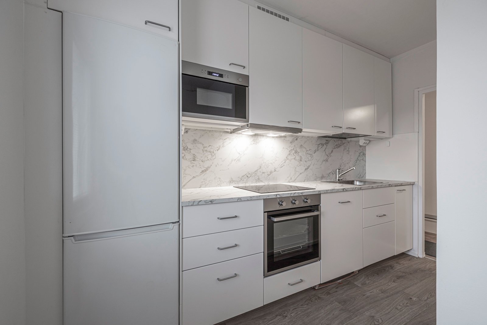 - Jääkaappipakastin, erillisuuni, liesi, liesituuletin, mikroaaltouuni, ja astianpesukone