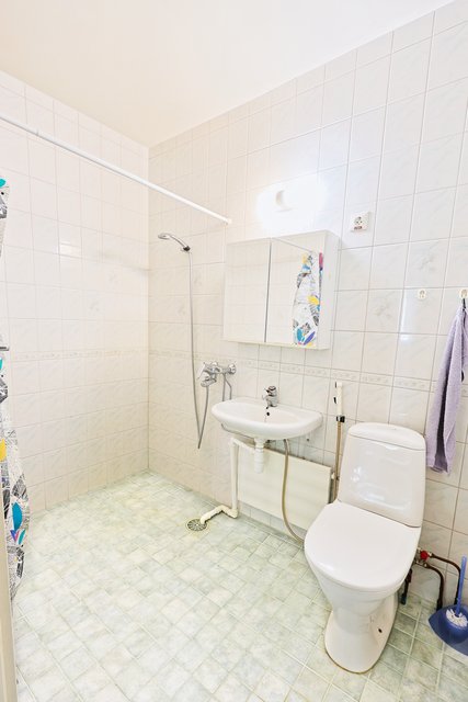 - WC-istuin, suihku, pesukoneliitäntä, ja peilikaappi