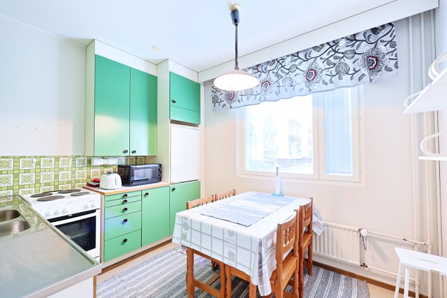 - Kaapistot, liesi, liesituuletin, apk ja jääkaappi