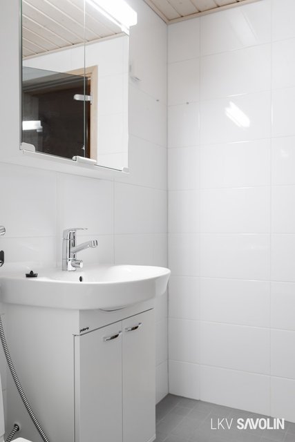 - WC-istuin, suihku, bidee-suihku, allaskaappi, pesuallas, peilikaappi, lattialämmitys, ja pesukoneliitäntä