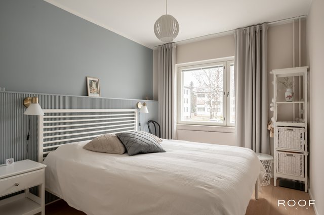 - VARUSTUS: Erkkeri, kattolamppu. SEINÄT: Maali. LATTIAT: Laminaatti.