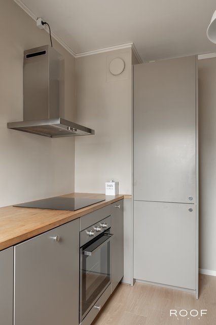 - VARUSTUS: Induktioliesi, liesituuletin, uuni, hana, kaapisto, allas, astianpesukone, jääkaappipakastin, integroidut kodinkoneet. SEINÄT: Maali. LATTIAT: Laminaatti.