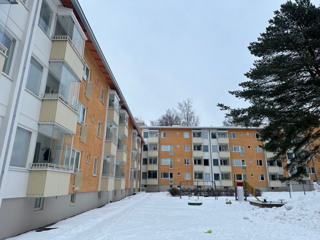 - Julkisivut, remontti on käynnissä rapuissa E-L. Raput A-D remontoidaan vuoden 2025 aikana. Remontissa uusitaan julkisivurappaukset ja maalipinnat. Parvekkeiden uusiminen on osa julkisivuremonttia.