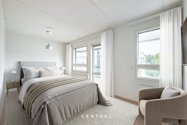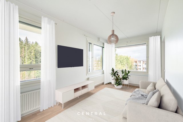 Nyt myynnissä heti vapaa, muuttovalmis ylimmän kerroksen edustava koti, jossa avaruutta ja valoisuutta. Huoneiston kaksi isoa lasitettua terassiparveketta tuovat runsaasti lisätilaa ja entistä enemmän tilan tuntua luo näkymät viereiseen viheralueeseen, eli täällä asut katseilta suojassa aivan viheralueiden laidalla.