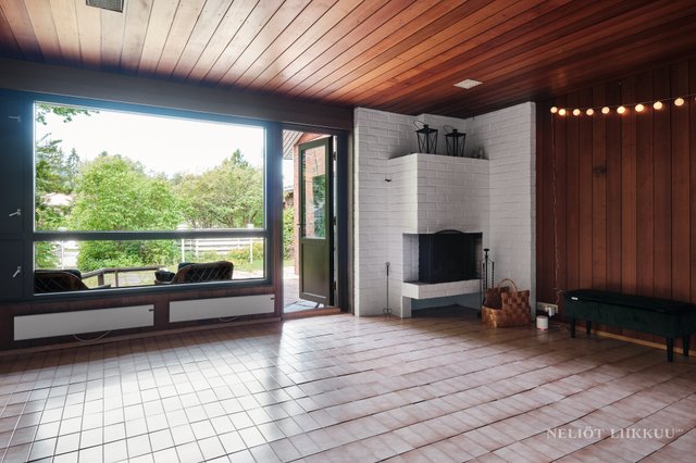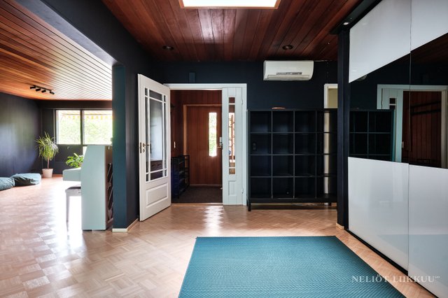 - Tunnelmallinen takkahuone/uima-allashuone, jossa nautit takkatulen lämmöstä ja oman uima-altaan virkistävyydestä, lisäksi tilasta on käynti suoraan ulos. Kodin eteiseen sijoitettu ilmalämpöpumppu viilentää kesähelteillä miellyttävästi olohuoneen, keittiön ja makuuhuoneet, tuoden arkeen lisää mukavuutta.