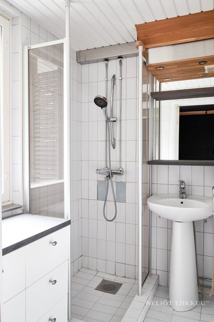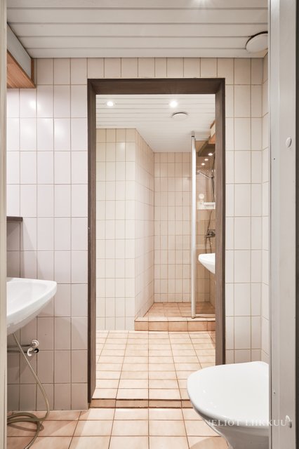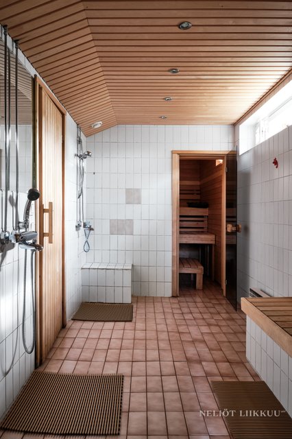 - Upea ja avara suihkutila, josta on kätevä kulku omaan saunaan sekä suoraan ulos etupihan puolelle, täydellinen yhdistelmä arjen mukavuutta ja ripaus luksusta.