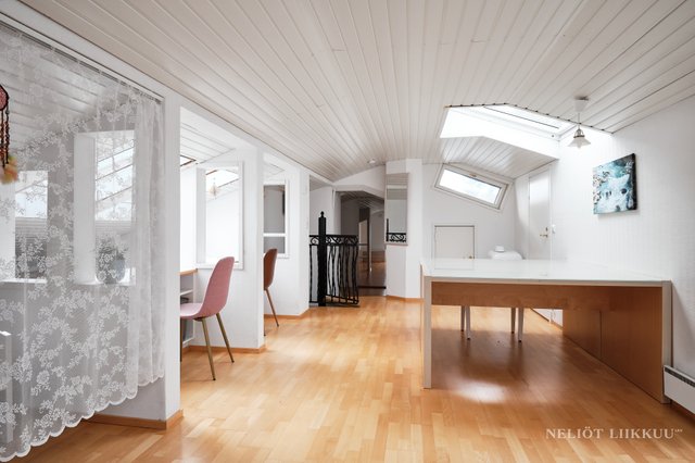 Tämä ainutlaatuinen paritaloasunto tarjoaa tilaa ja mahdollisuuksia yli 300 neliömetrin verran. Kodin pohjaratkaisu on suunniteltu vastaamaan isommankin perheen tarpeita - ja se soveltuu mainiosti myös osittain työ- tai liiketoimintakäyttöön. Tässä kodissa tila ei lopu kesken!