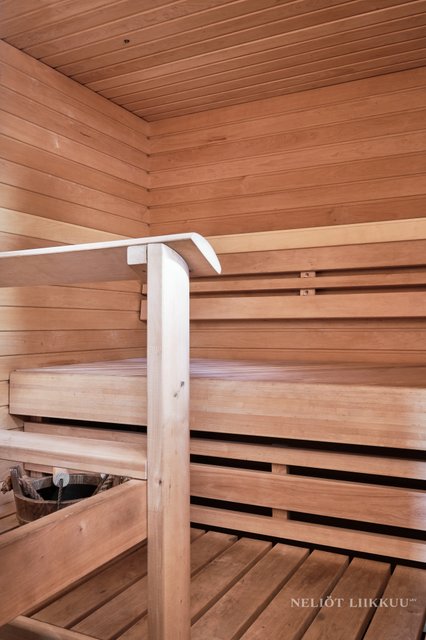 - Saunaa kruunaa laadukas Harvian kiuas sekä ikkuna, josta tulviva luonnonvalo luo viihtyisän ja rauhoittavan tunnelman.